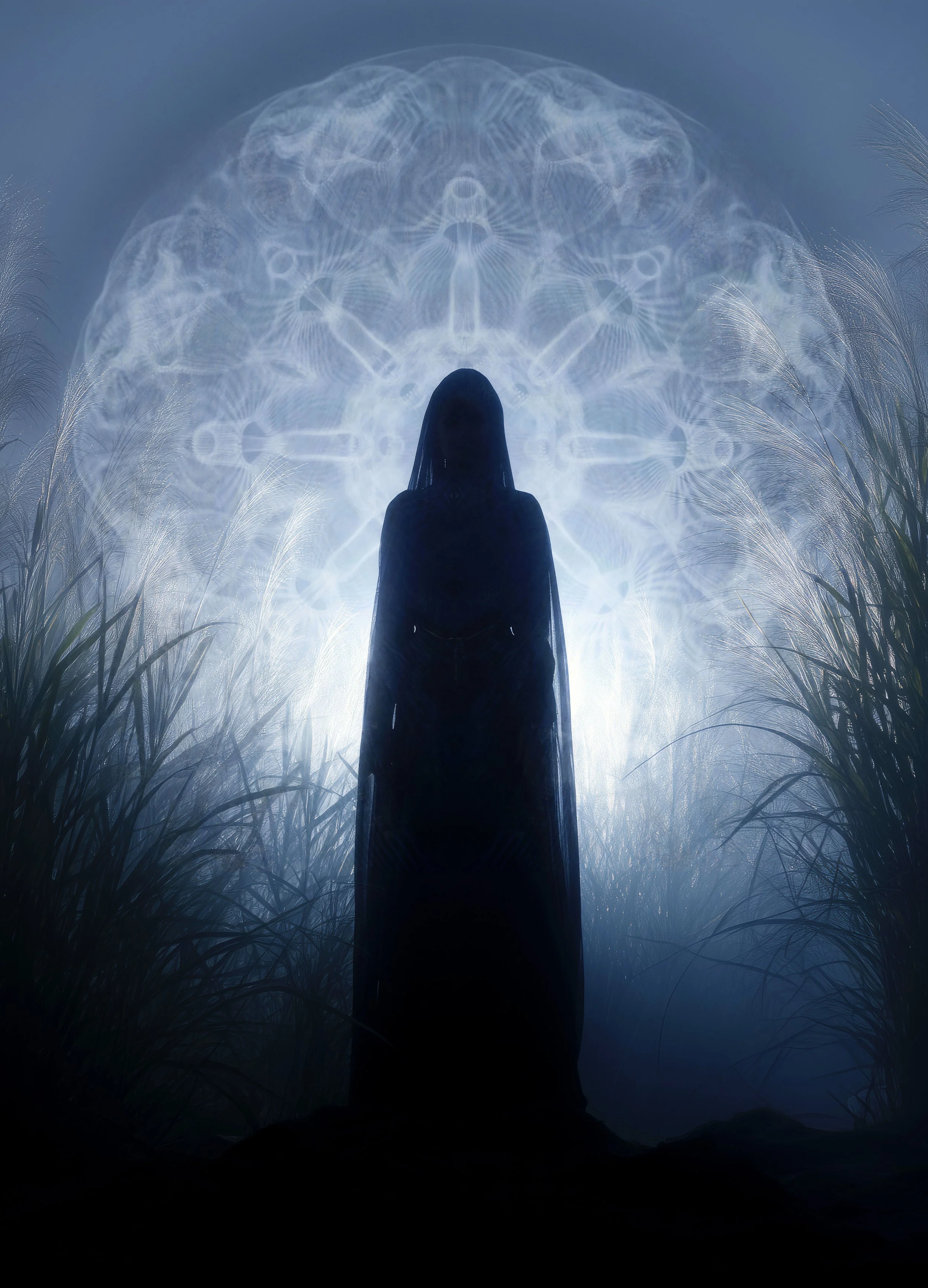 The works in this series are based on cymatic resonance photography — images created by sound vibrations moving through water. These patterns reveal an intrinsic order: geometry emerging directly from frequency. In this context, the aura is approached not as a fixed image, but as a dynamic field of vibration — structured, responsive, and in constant transformation.